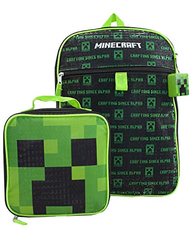 Minecraft Kids Full Size 17 Inch Green Pickaxe Backpack Lunch Bag